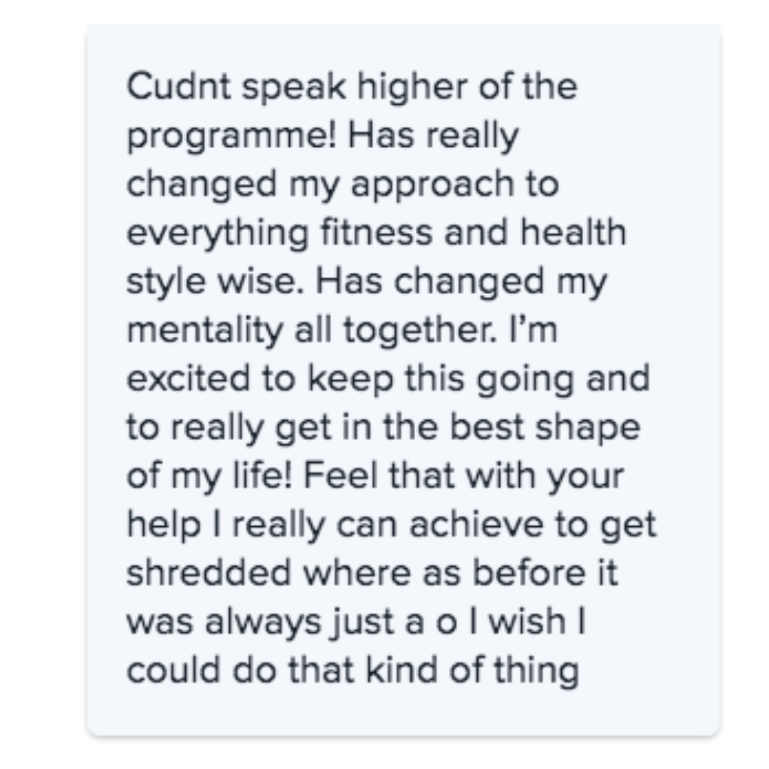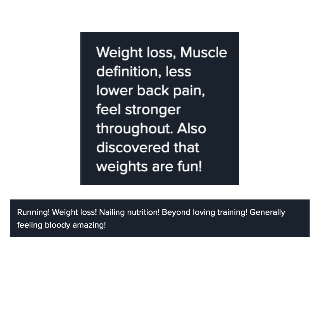 Also gained a lot of knowledge of nutrition and how to train effective rather than going gung ho for a month and not seeing any results - all about trusting the process."